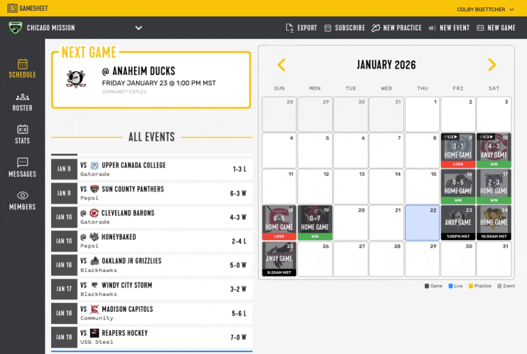 - Sign in to the Team Dashboard at https://teams.gamesheet.app