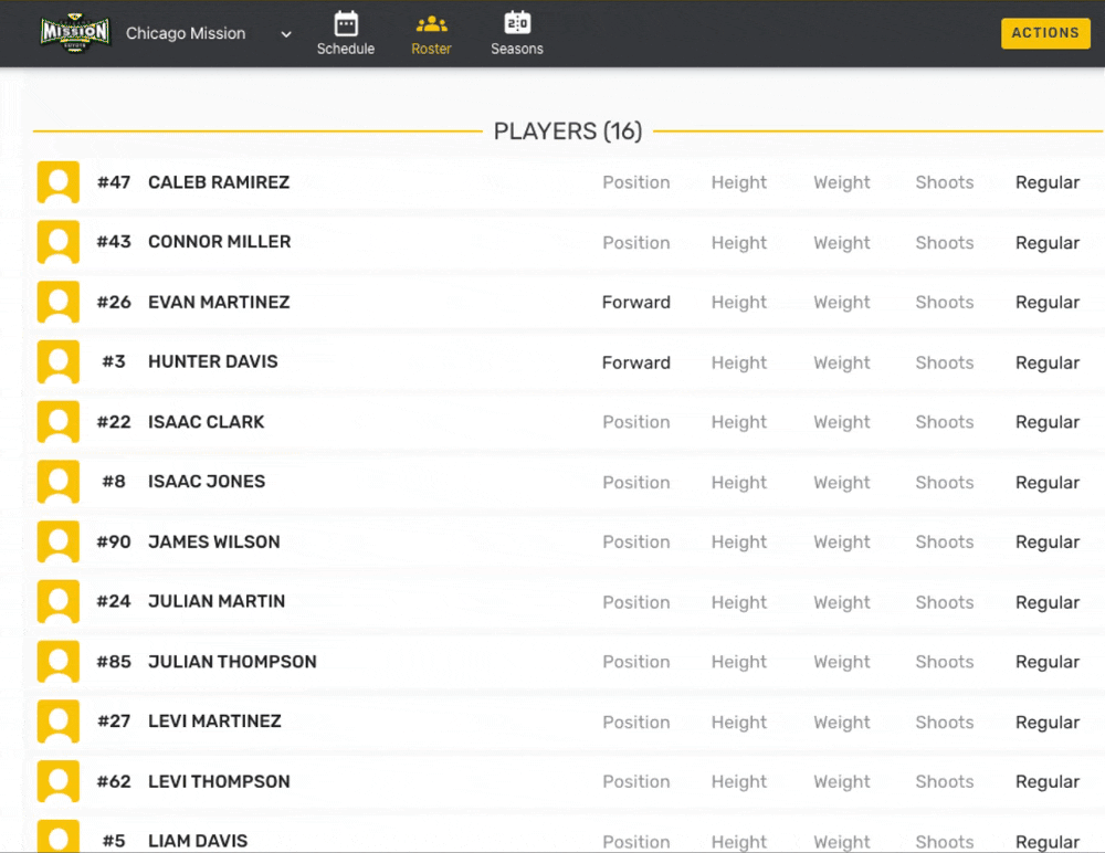 GameSheet Teams is designed specifically for managers and coaches to be able to see and manage all of their teams in one place. All roster management can be handled in the Roster tab of the GameSheet Teams App. Rosters can be added via CSV Import, USA Hockey Import, Hockey Canada Import, or manually one at a time.